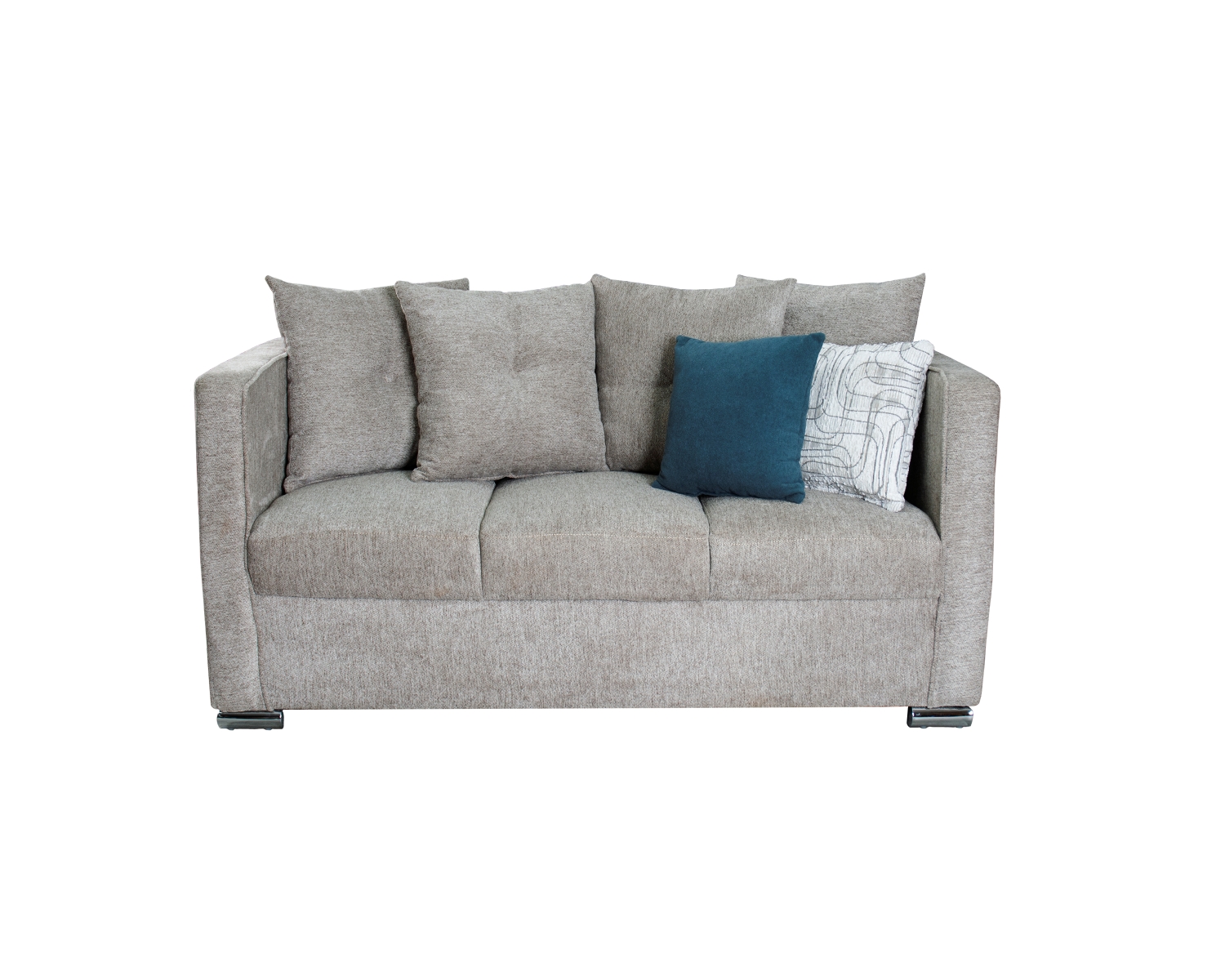 Color: Beige Acabado: Tela tejida Armazón: Madera de pino Patas de plástico 4 cojines de respaldo 2 cojines decorativos Medidas: 75 x 81 x 166 cm